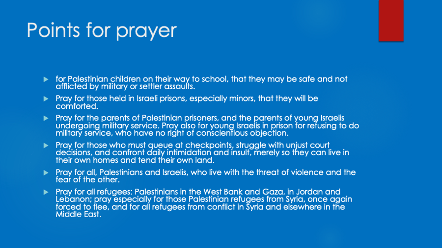 Book a speaker from EAPPI to hear eyewitness accounts.