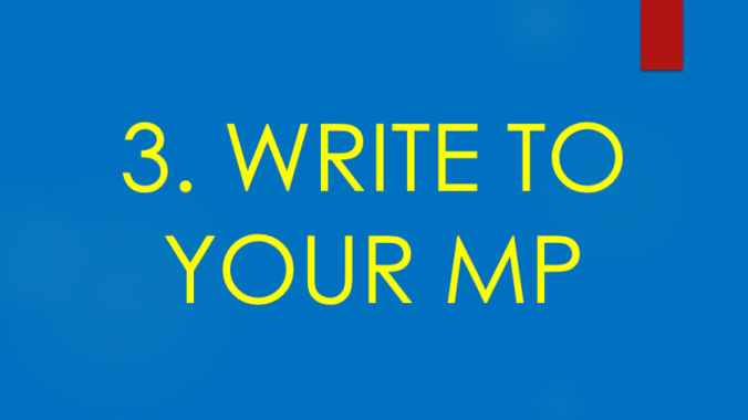 Ask them to take action to urge the Government to: stop the annexation; take action to call the Israeli Government to account if the annexation takes place; end the occupation of Palestine and the siege on Gaza.